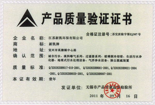 产品质量验证证书