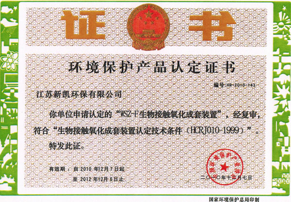环境保护产品认定证书