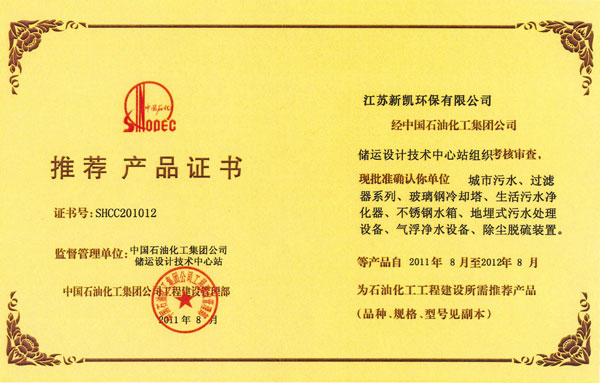 推荐产品证书