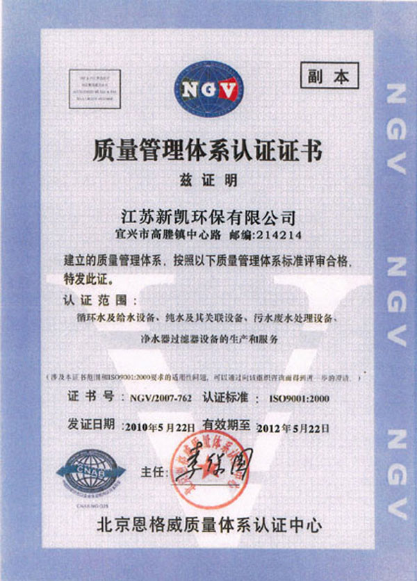 质量管理体系认证证书